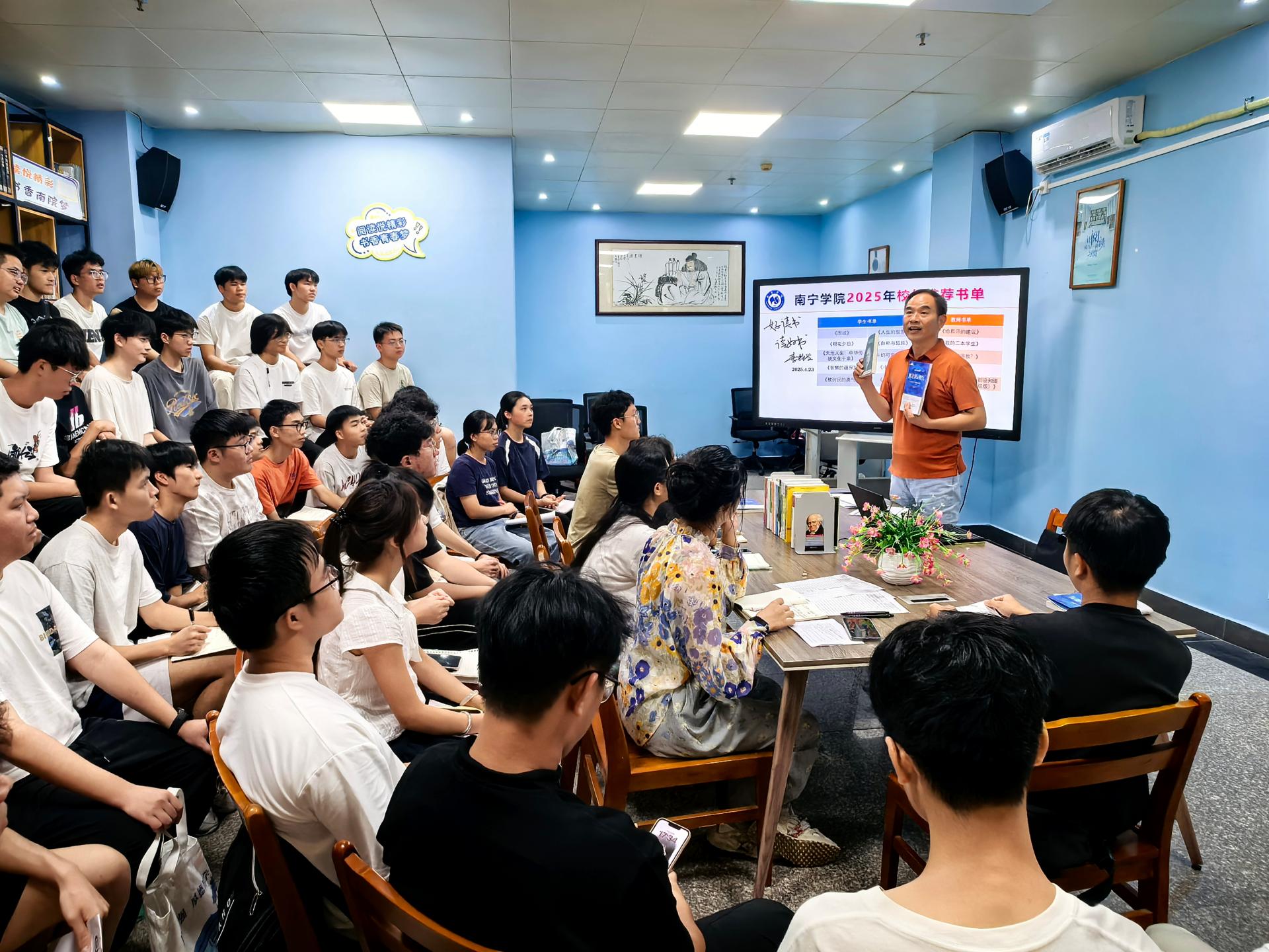 9月开学季,正值中国人民抗日战争暨世界反法西斯战争胜利80周年,也恰逢第28届全国推广普通话宣传周。为弘扬中华优秀传统文化,进一步丰富书香校园内涵,9月23日下午,南宁学院图书馆联合校主持人队、读书协会,于图书馆二楼阅读分享空间共同举办了“经典润心·声动南院——以诵读传承文化,以声音致敬经典”诵读会。教育学院2025级学前教育一班以及读书协会成员等50余名学生积极参与。活动伊始,主持人以一段《少年中国说》开启...