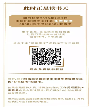 1月29日,上海交通大学出版社官方微信公众号“上海交通大学出版社”发布《全场免费 | 宅在家抗疫情,电子书任你读》称,为响应“减少外出”的倡议,阻断疫情传播的途径,出版社决定,其自有APP“慕知阅读”平台将从即日起至2月9日,免费开放全场电子书资源(首批300余种),帮助大家掌握健康常识,学习专业知识,畅读悦读空间,共同打赢防疫攻坚战。