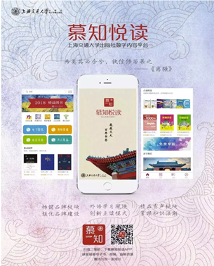 据介绍,“慕知悦读”APP是由上海交通大学出版社重点打造,围绕自身海量资源进行内容聚合的平台,以电子图书、有声读物、语言点读、视频微课为主要形式切入点,以理工医学、社科人文、外语学习为主要内容切入点,将上海交大社的优质资源进行数字化开发,为用户提供丰富而多样的知识。