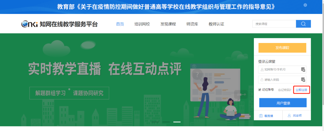 注册在线教学平台用户。目前该系统采用中国知网统一认证系统,只要在知网(汇智或者研学)上注册过的用户即可直接使用其用户名和密码进行登陆。如果没有,请根据以下步骤进行注册。