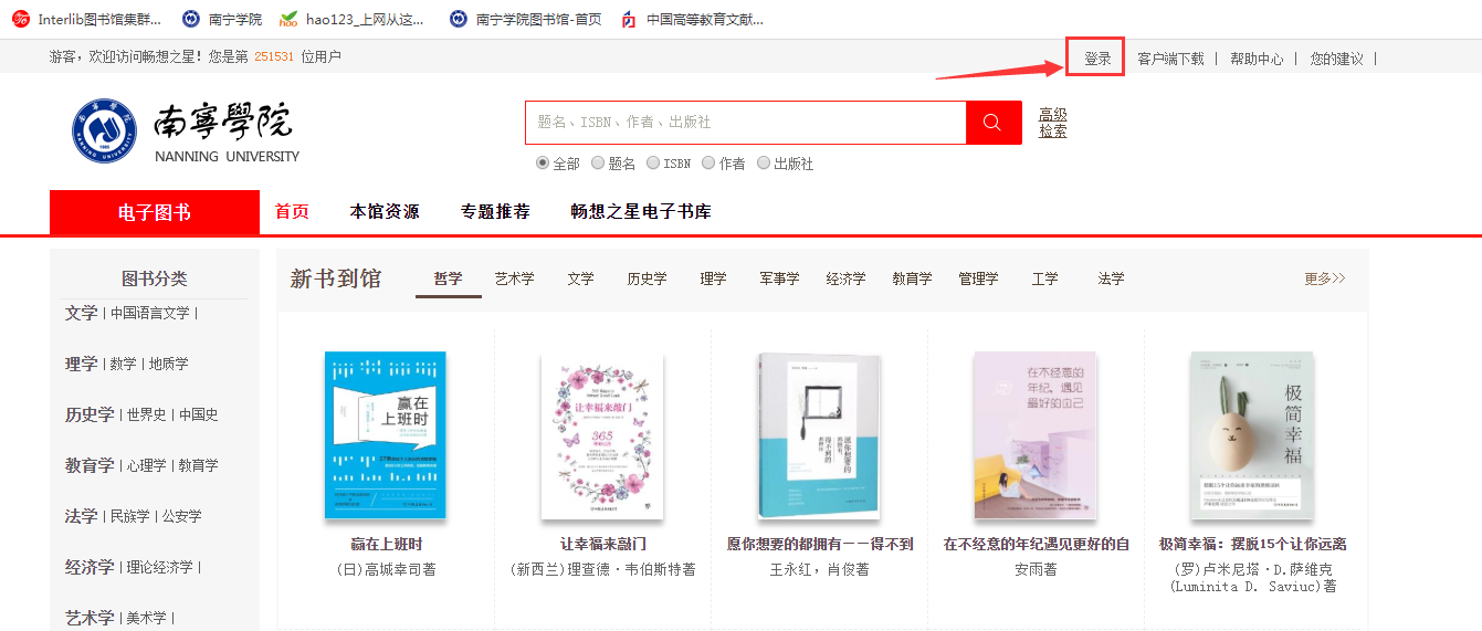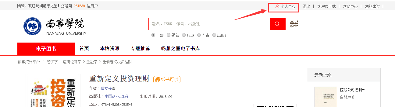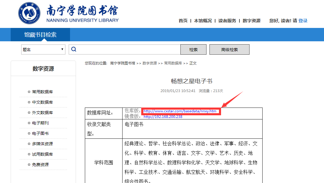 或通过访问图书馆网站首页,“数字资源”——“常用数据库”——“畅想之星电子书”,点击包库版网址进入;