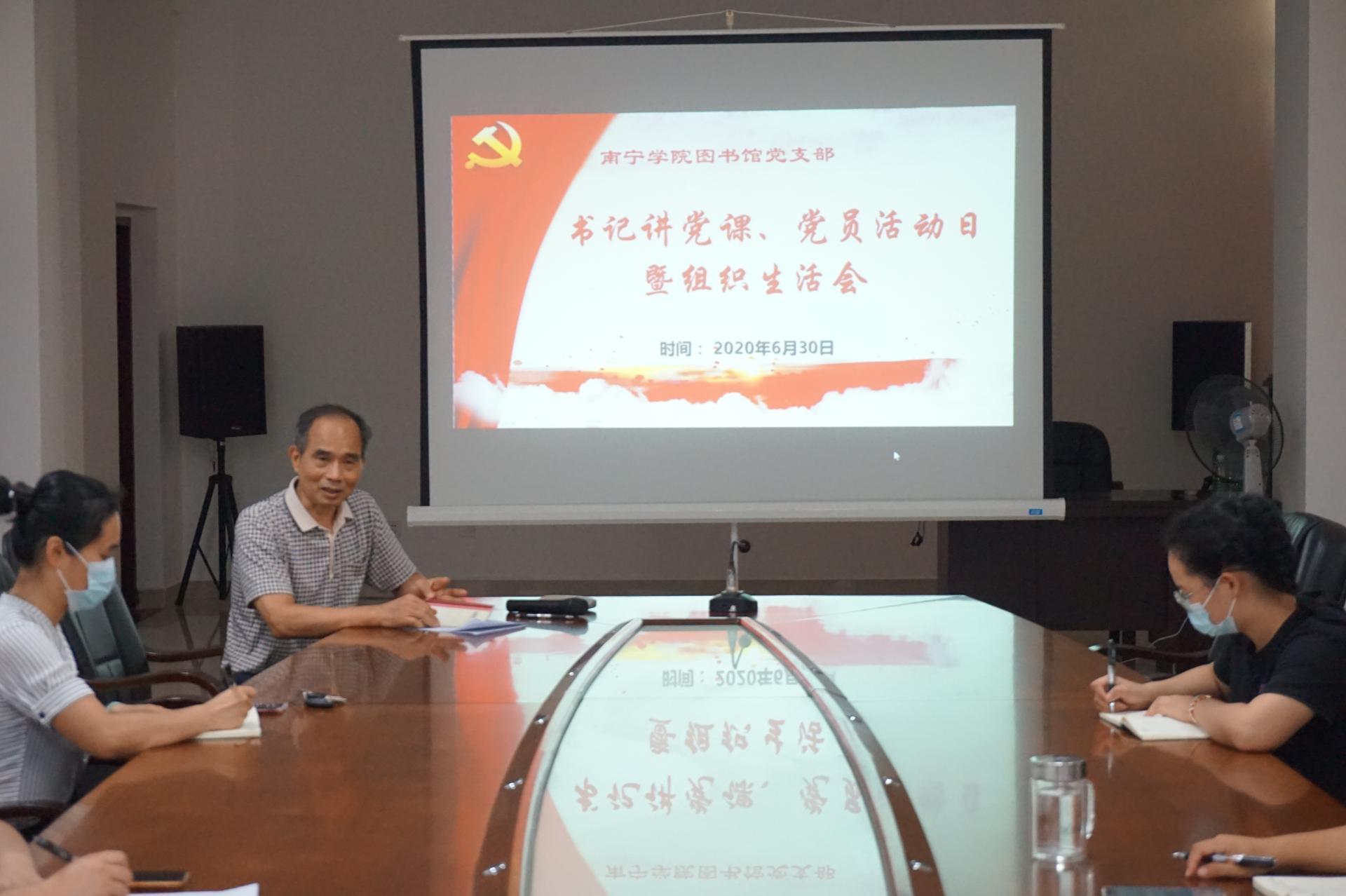 2020年6月30日,图书馆党支部在图书馆八楼会议室召开书记讲党课、党员活动日暨组织生活会。会议由党支部书记陈大广馆长主持。