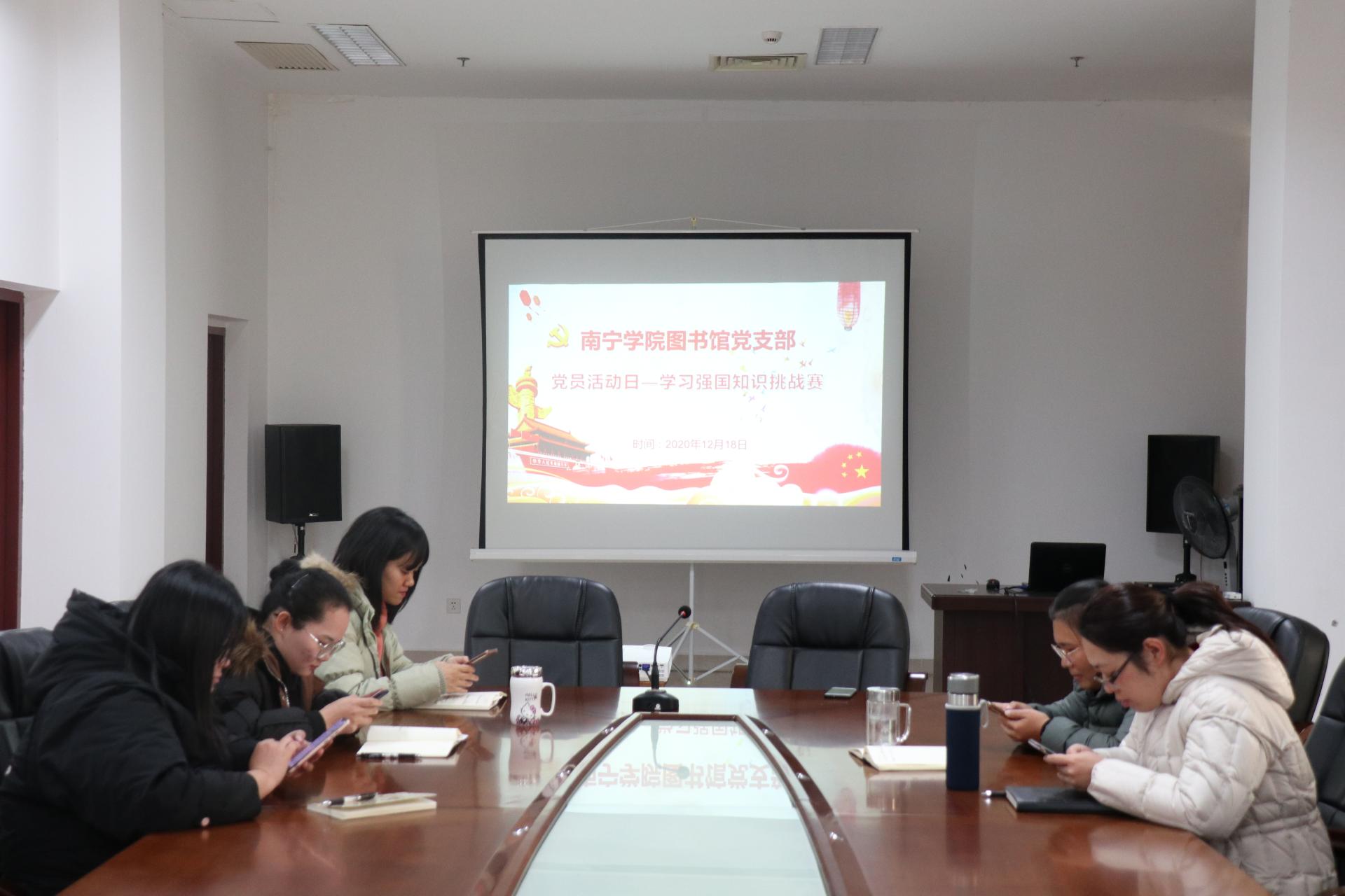 12月18日上午,图书馆党支部在图书馆8楼会议室开展了党员活动日——学习强国知识挑战赛。