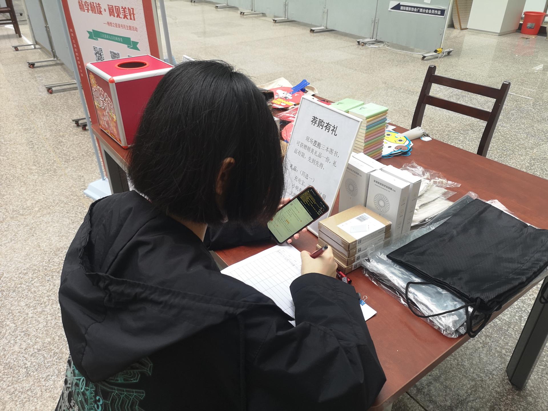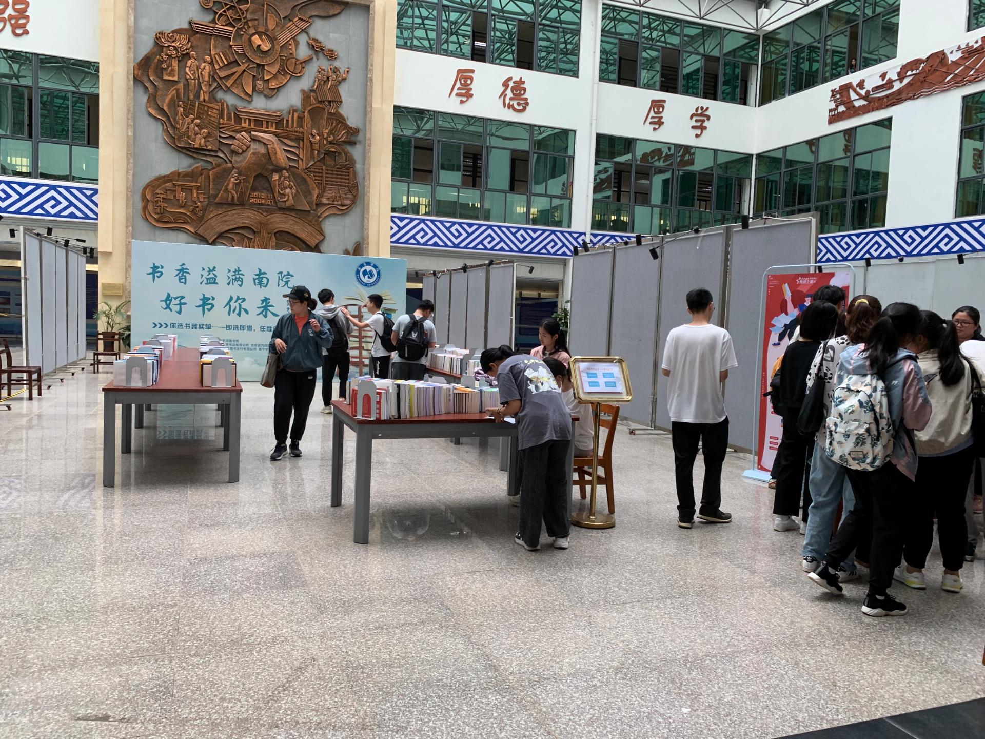 为了更好地满足读者的阅读需求,提升读者对文献资源的满意度,增强读者参与文献资源建设的意识。4月20日至21日,图书馆联合北京人天书店有限公司、北京百万庄图书大厦有限公司、广西海天图书发行有限公司,在图书馆二楼开展“书香溢满南院,好书你来选!”活动。