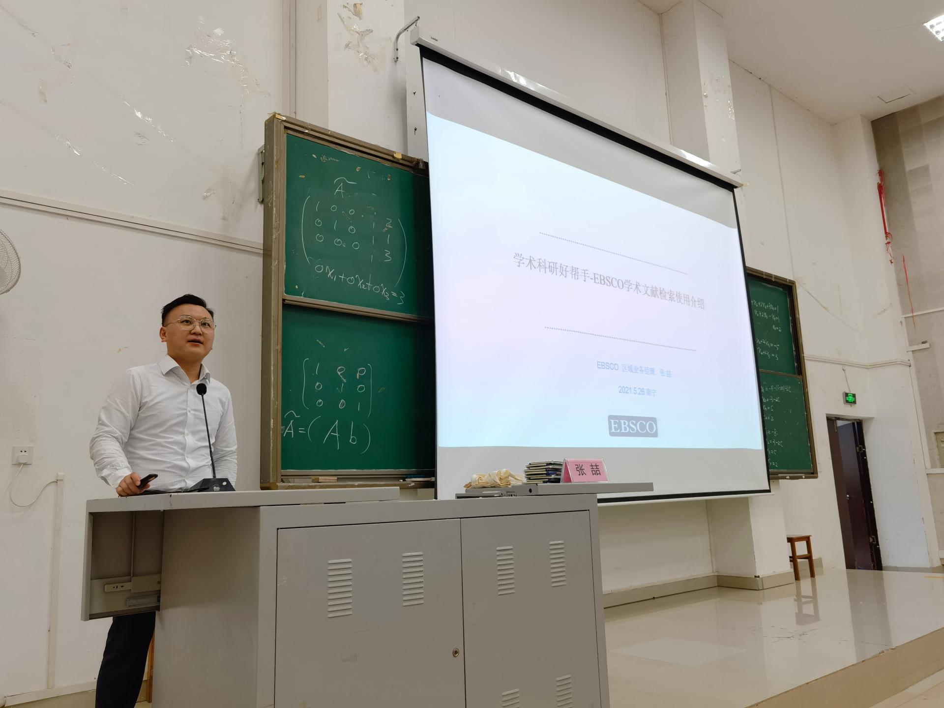 为了帮助南院读者进一步了解外文学术资源的使用,获取高质量的科研信息资源。5月26日19点,图书馆邀请EBSCO培训讲师张喆,在敷文园C104教室开展主题为“学术科研好帮手,EBSCO数据库”的EBSCO ASP+BSP外文期刊数据库培训,约50名学生到场参与。