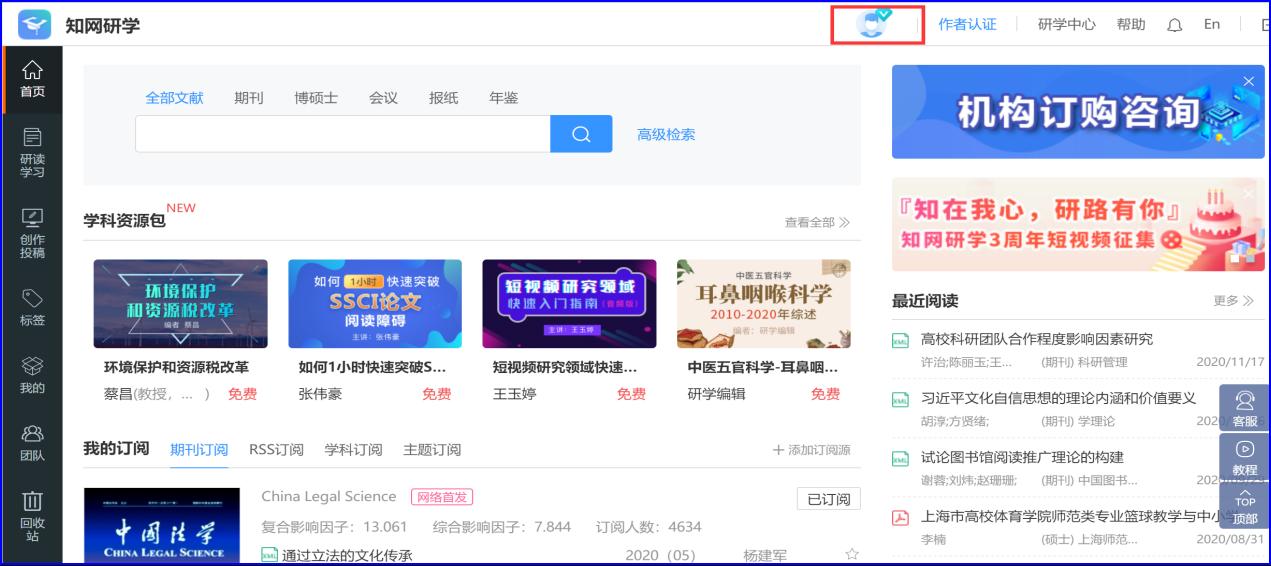 3.关联成功后,就可以在校外免费使用知网研学平台(网址:x.cnki.net)。
