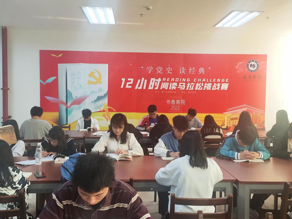 南宁学院图书馆2021年全年举办的“学党史、读经典”12小时阅读马拉松挑战赛活动到此圆满结束。希望同学们通过专心阅读红色经典,了解我们党百年来的光辉革命历程,坚定自己的理想信念,自觉担当起中华民族伟大复兴的新时代使命;通过阅读感受革命先辈们不惧艰难险阻、努力奋斗的精神,不忘初心、牢记使命,发挥马拉松运动精神,阅读永不止步,红色基因世世代代传承!(文/图 朱宗宝)