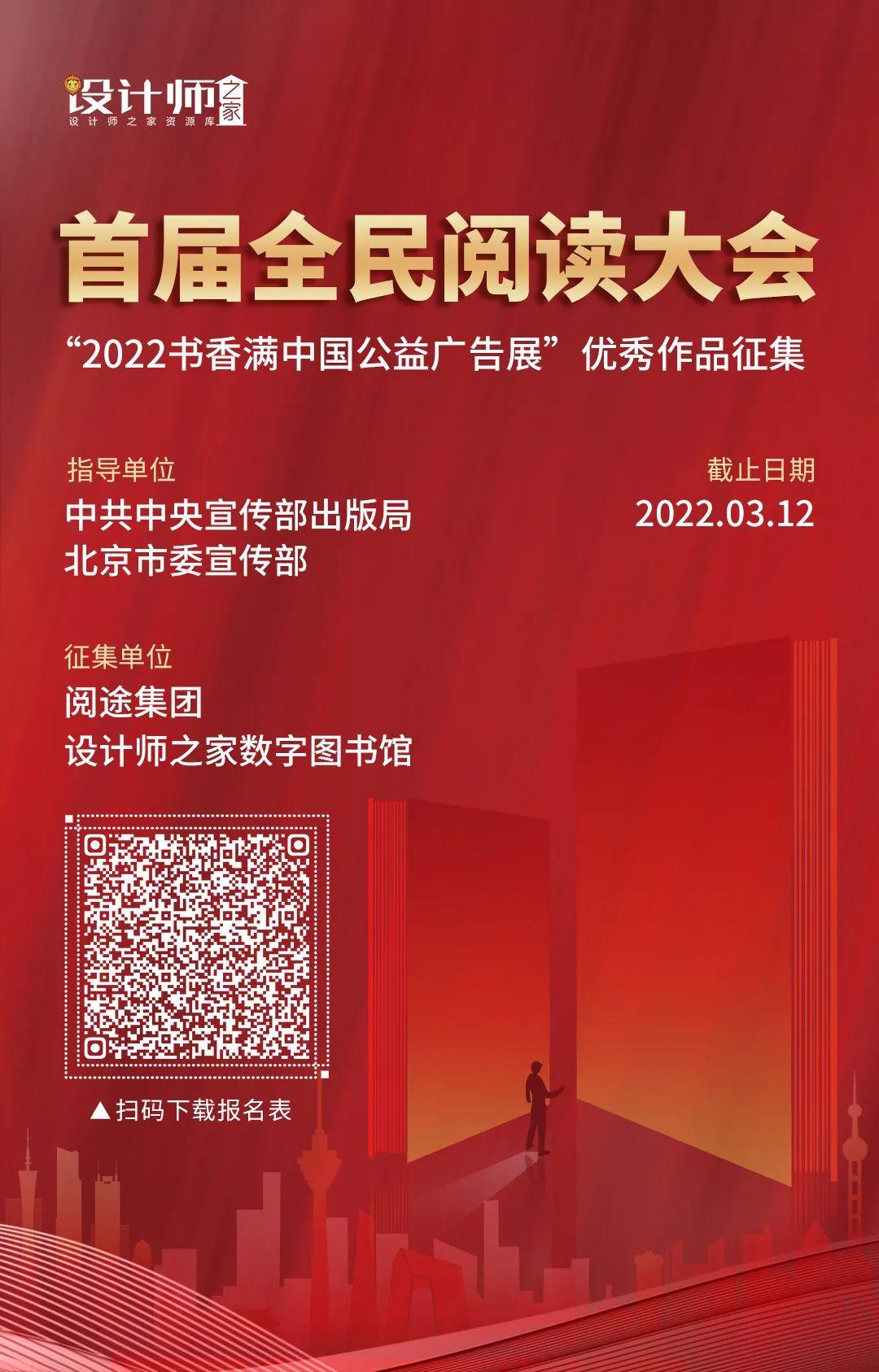 《首届全民阅读大会》将于2022年4月23日至25日在北京举办,在中共中央宣传部出版局、北京市委宣传部指导下,阅途集团承担的“2022书香满中国公益广告展”,现面向全国公开征集全民阅读主题的优秀海报作品,符合条件的优秀作品将予入展。