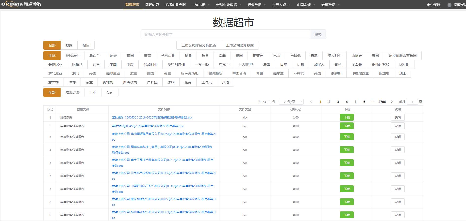 由于每个国家采用的会计准则不同,中文在线原点参数将所有国家/地区的上市企业财务数据,按同一会计准则完成标准化。不同国家公司的财务数据按同一会计准则、同一语言(中文、英文),同一货币(人民币、美元、或本币)展示。最终实现了跨国、同行企业财务科目与指标数据的可对比、可排序。用户可按国家、行业、年份、财务科目和财务指标,5个维度对全球所有上市企业数据进行操作。