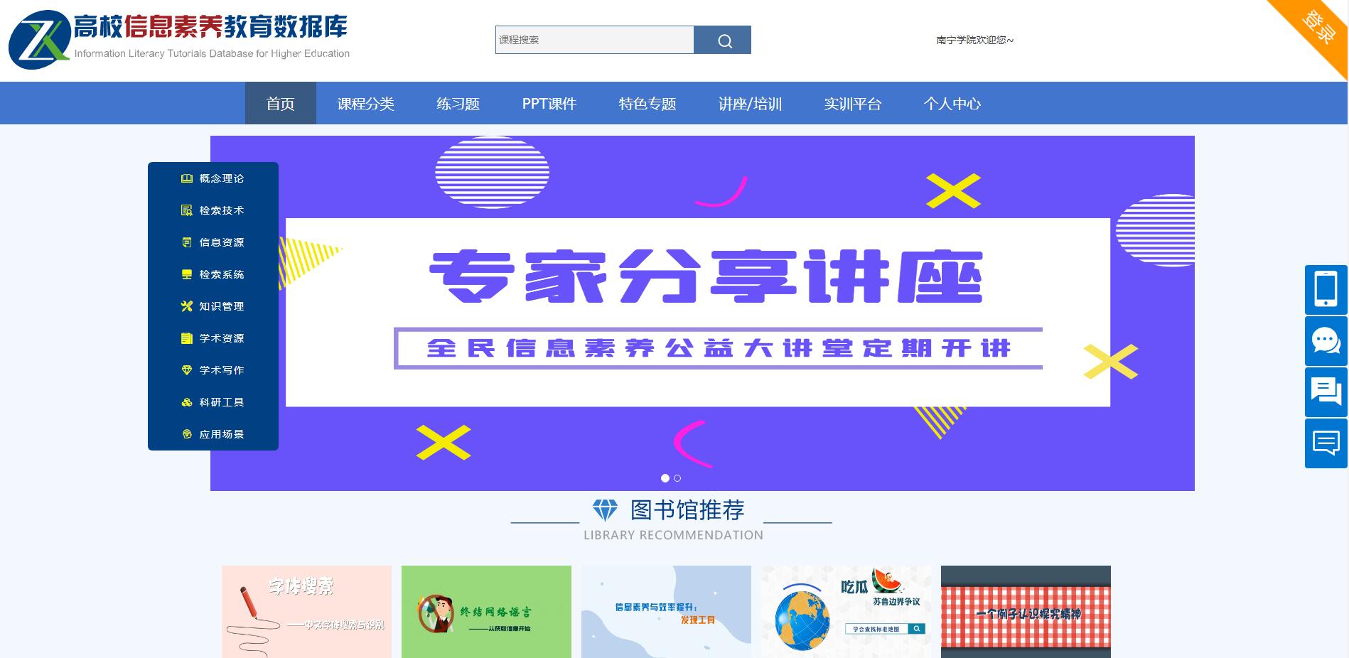高校信息素养教育数据库,课程涵盖了概念理论篇、检索技术篇、信息资源篇、检索系统篇、知识管理篇、学术资源篇、学术写作篇、科研工具篇、应用场景篇九大模块的数百节培训课程,以微视频的方式,通过2-5分钟讲述一个知识点,视频简短,但是干货满满,便于利用碎片化时间进行学习,可以视为高校《文献检索》或《信息检索》课程的升级版。