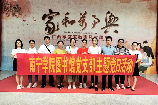 6月30日下午,图书馆党支部到广西民族博物馆参观“家和万事兴”——广西家庭家教家风主题展。展览以“风清气正”为主题,分为“红色家风”“先贤家教”“清廉家庭”三部分,充分挖掘广西有史籍记载的、有遗迹遗物留存的或人民群众口耳相传的家风故事材料,结合时代楷模光荣事迹,主题突出、主线清晰,故事生动、深刻。通过参观学习,支部党员同志深刻领会到家风建设的重大意义,倡导优良家风家训,赓续红色血脉,传承清廉家风,引导党员们廉洁齐家。随后,同志们还观看了反腐纪录片《零容忍》和清廉家风警示教育片《家风不正遭祸患,清廉传家惠永久》,以此来加深党员同志们的学习,巩固反腐、清廉思想。