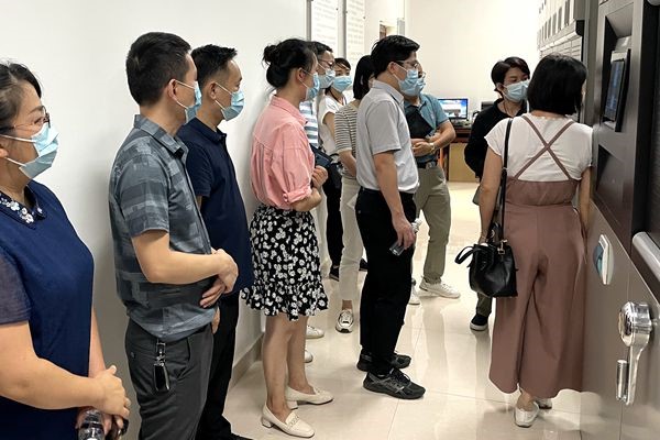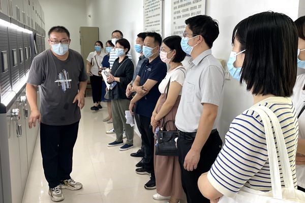 8月5日下午,由威宁集团办公室副主任龙彦率队,大地飞歌集团、威宁资产公司、威宁市场公司、融达小额贷款公司等相关人员一行9人到南宁学院档案馆考察交流,南宁学院图书馆(档案馆)副馆长覃雪莲和档案工作相关负责同志热情接待了客人。龙副主任一行参观了位于图书馆8楼的标准化、智能化档案库房,工作人员对库房内的设施设备进行了细心讲解,特别是人工智能化密集架的各项参数与功能都进行了详细地介绍。