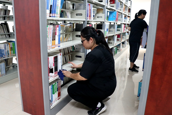 为给读者提供舒适惬意、清新怡人、干净整洁的阅读环境,炎炎夏日,在无空调情况下,图书馆开展了为期3天的卫生大扫除、环境大清理活动,全力做好开学准备工作。