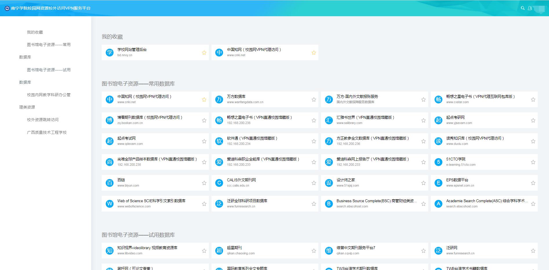 读者在校外请使用电脑端通过“校园网VPN”访问图书馆电子数据库资源,通过“校园网VPN”访问到的电子数据库资源,资源的使用权限和使用范围跟校内网一样。