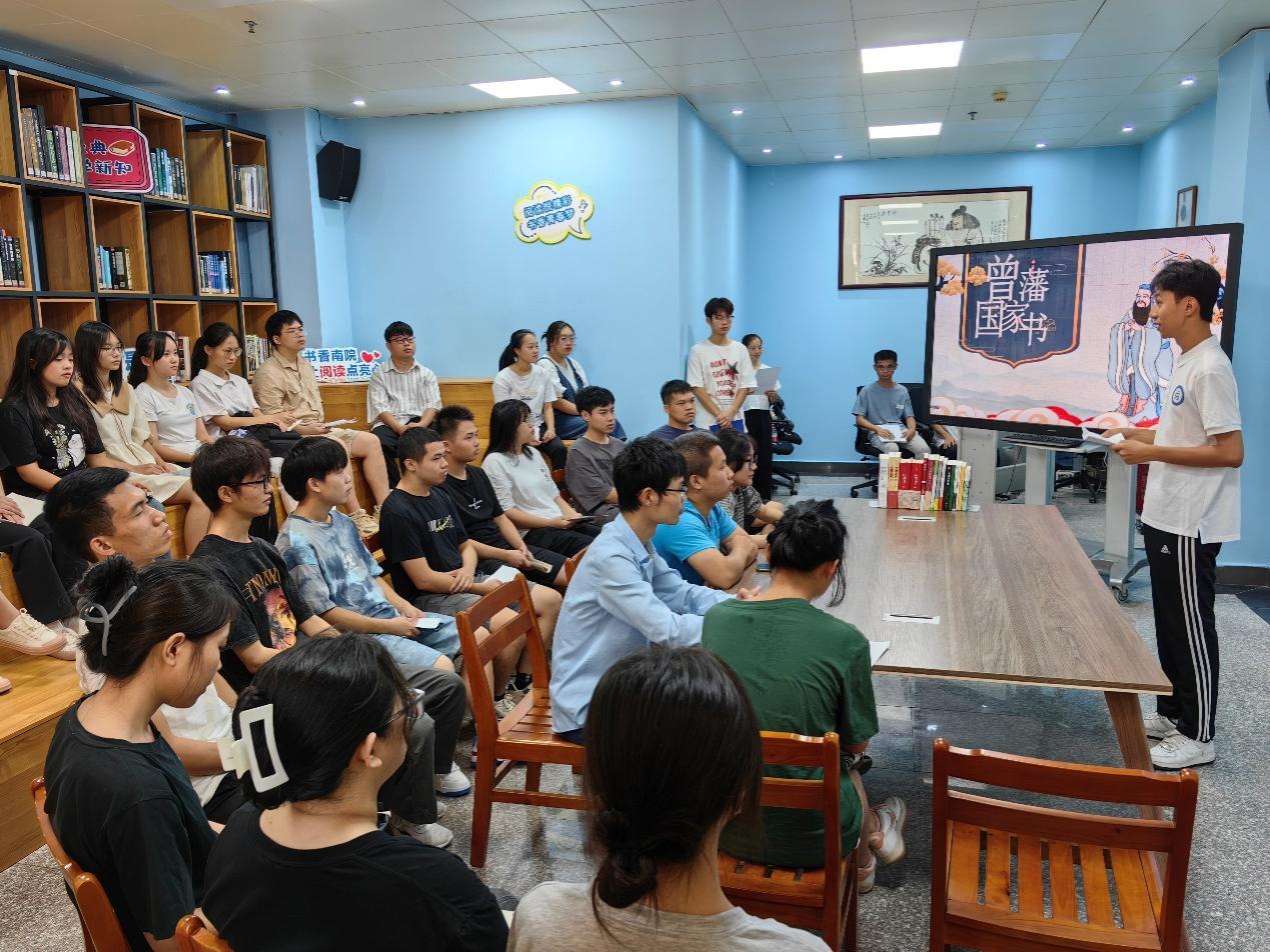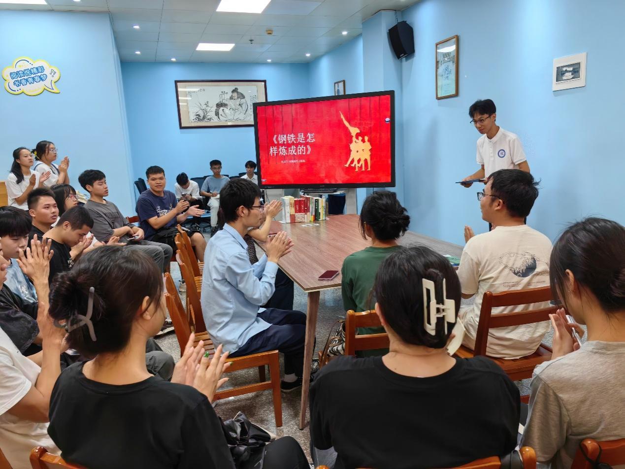 活动伊始,主持人上台与师生介绍今天活动主题和内容,引入书籍话题,并请出好书分享官,为在场参与者依次介绍本期分享好书《曾国藩家书》《钢铁是怎样炼成的》,进一步熟悉该书的作者经历、主要内容,带大家走进书中、聆听书籍的声音,享受沉浸式阅读。