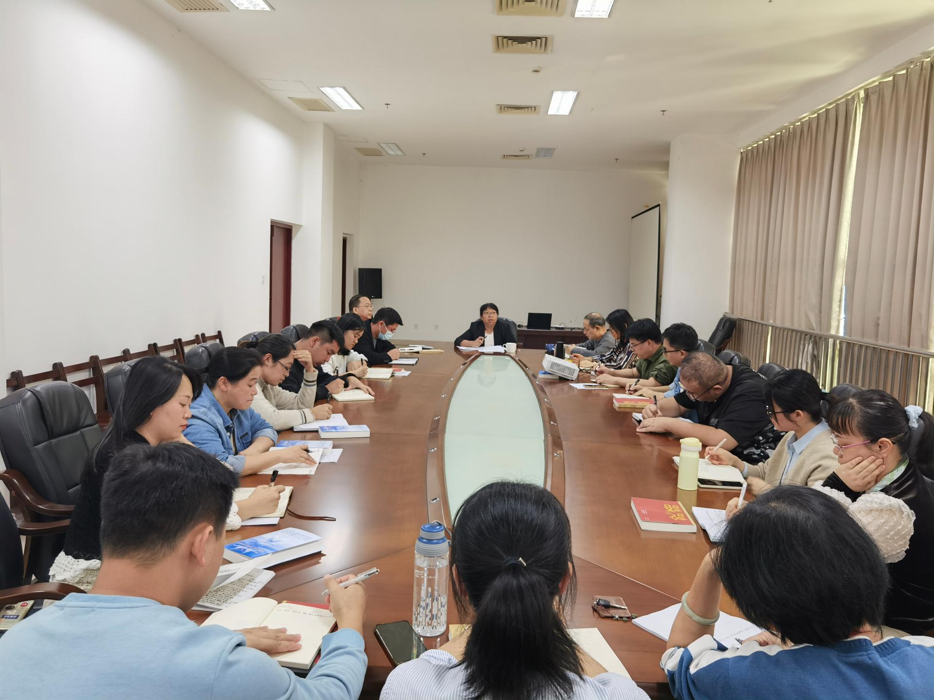 2023年11月24日下午,图书馆(档案馆)组织全体馆员,在八楼会议室召开内涵建设大讨论总结暨读书分享活动,活动由馆长谢清主持。