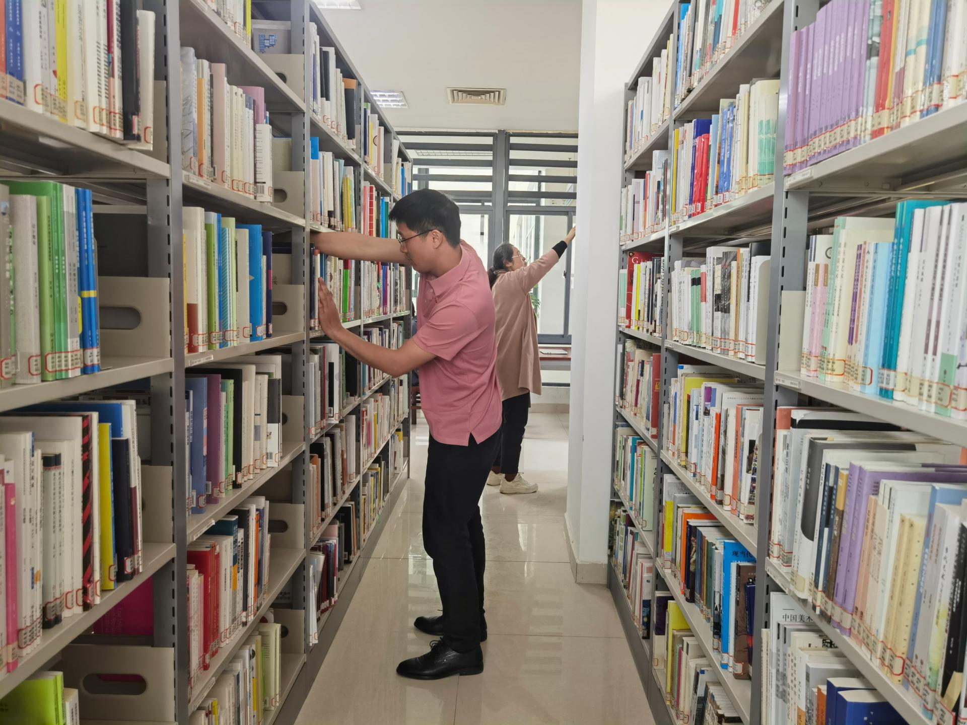交流学习结束后,大家在韦书记的带领下开展践行雷锋精神志愿服务——图书馆书籍整架行动。首先由流通阅览科的朱宗宝老师介绍图书馆书籍排架方式和整架要点,强调整架注意事项。接着,图书馆支部党员与师生读者们分工合作,纠正错架书籍,整理书籍摆放位置,有条不紊地完成了图书馆七楼北面借阅室的书籍整架志愿服务工作,确保读者能更高效准确地查找所需书籍,为南院读者提供一个整洁有序的借阅环境。