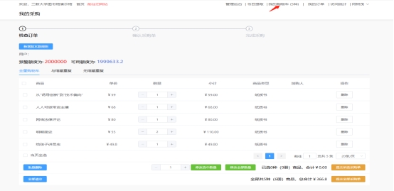 3.确认采购单:✔全选,点击确认采购单,即可完成线上选购;