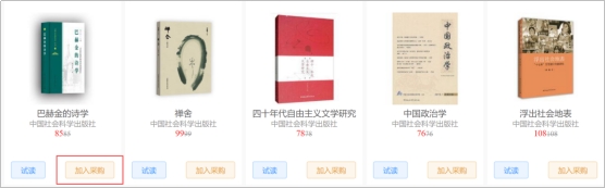 1.加入采购:任意书单、分类界面点击进入书目列表页,点击将您心仪的图书加入采购