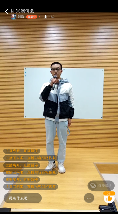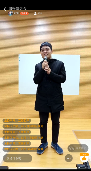 12名大一到大三的同学上台演讲,通过随机抽签选择关键词并即兴演讲的方式,分享了自己这一年的经历。