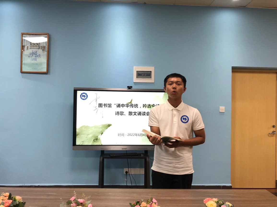 节分端午自谁言,万古传闻为屈原。为弘扬中华优秀传统文化,品诵国学、中国文学经典,营造积极向上的南院书香氛围,6月4日-5日,图书馆与读书协会在图书馆二楼阅读分享空间联合举办了“诵中华传统文化,吟古今诗词”诗歌、散文诵读会和“承中华传统文化,品中国文学魅力”国学、中国文学诵读会。诵读会由图书馆刘春婷老师和读书协会副会长黄仁波主持。