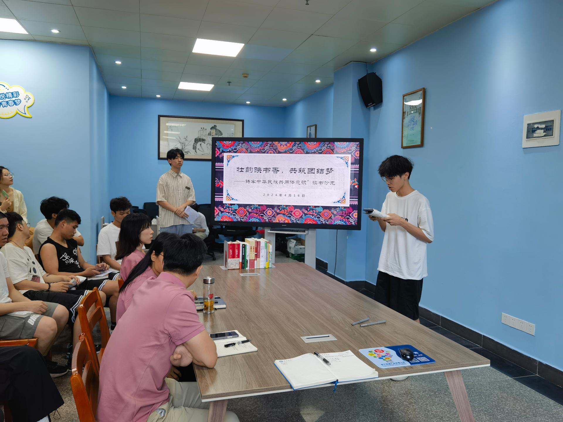 最后,十几名读者依次上台分享了自己阅读铸牢中华民族共同体意识和民族文化书籍获得的学习心得,包括阅读民族团结读本的感悟、从壮族民歌中摘抄的优美歌词、广西少数民族制度和文化等,还有同学积极分享了自己家乡的节日风俗,包括广西刚过去的三月三、云南的泼水节文化、京族的独弦琴非遗文化等。同学们纷纷表示,作为青年大学生,不仅要以实际行动践行民族团结,与身边少数民族的同学团结友爱、互帮互助,还应当担任起传承和弘扬优秀民族文化的历史重任,做好铸牢中华民族共同体意识的实践者。